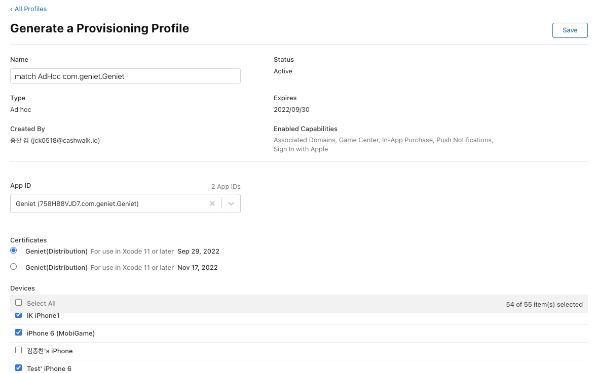 기기등록을 했으니 그것을 프로비저닝 프로파일에 추가해서 새로 다운받아야 한다.