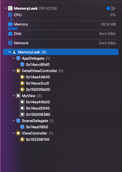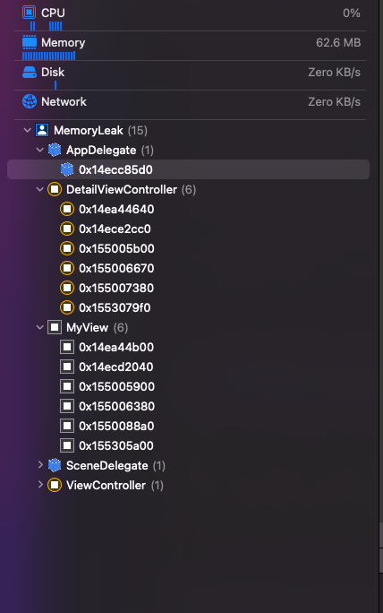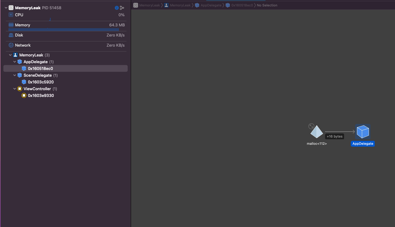 weak var delegate: MyDelegate? 일 때 (약한참조일때)