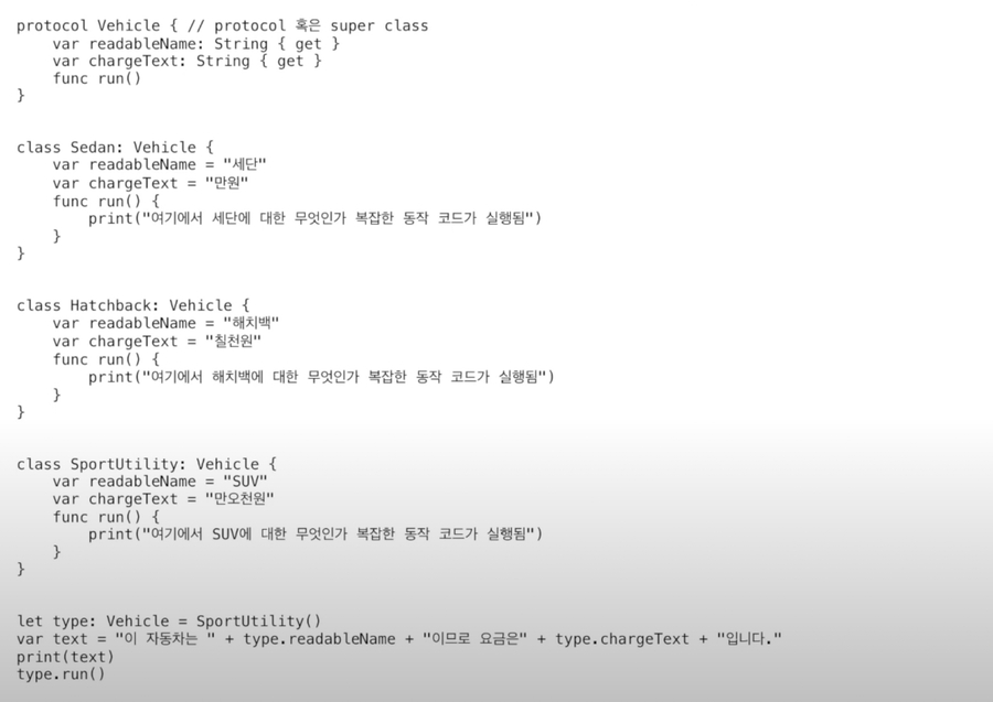 그래서 프로토콜을 사용해서 OCP를 써라는 말이다. 밑에 예제코드가 있다.
