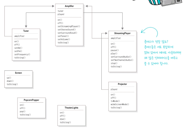 팝콘, 조명, 스크린, 프로젝트 같은 서브 시스템을 합쳐서 통합 인터페이스를 만들어버립니다.