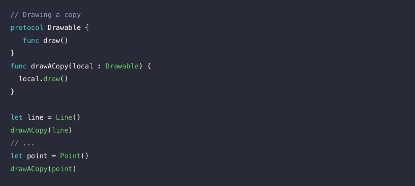 그러면 컴파일러는 알 수 있죠. drawPoint(point) -> point.draw() 이구나. 그리고 point.draw()는 결국에 struct Point안에 있는 draw() 메소드를 호출하는 거죠?