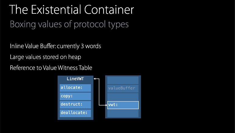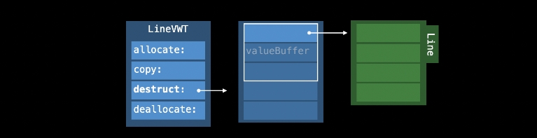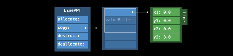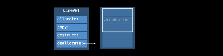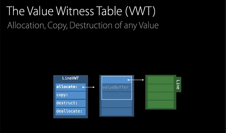 vwt는 existential container의 생성과 해제를 담당하는 인터페이스에요. 4종류의 메소드가 있는데, vwt에 따라서 LineVWT라는 녀석이 구현되어 있겠죠?
