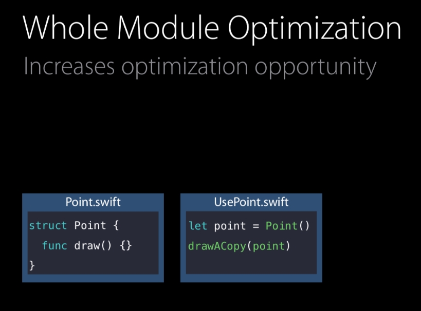 사용하는 방법은 xcode에서 -whole-module-optimization 플래그를 통해 켤 수 있습니다.