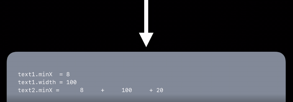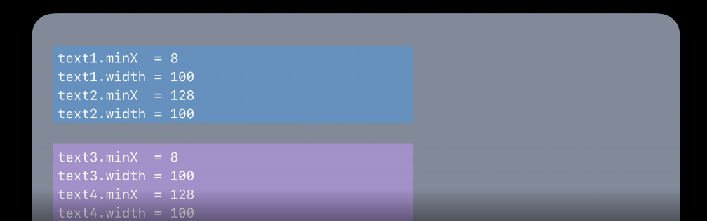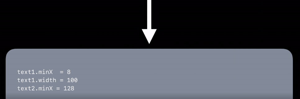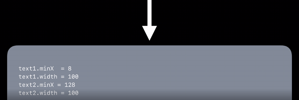 그런데 여기서 최적화가 일어납니다. 바로 text1.minX를 8로 text1.width를 100으로 대체하는 것이죠. 128이 됩니다. 마지막으로 text2.width = 100이 들어오고 계산이 끝이납니다.