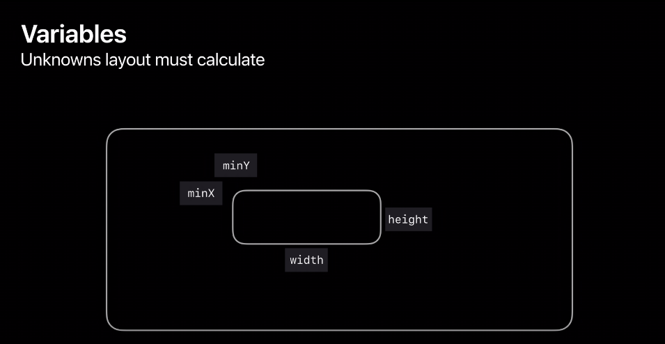 이 경우에서 변수는 View의 frame 데이터입니다. 최소한 4개겠죠. minX, minY, width, height 이렇게요. 시작좌표와 너비, 높이만 있으면 최소한 그릴 수 있는 조건은 달성할테니까요.